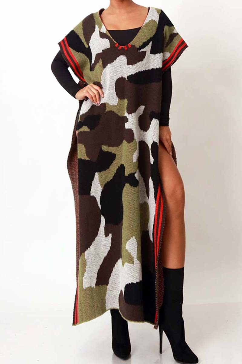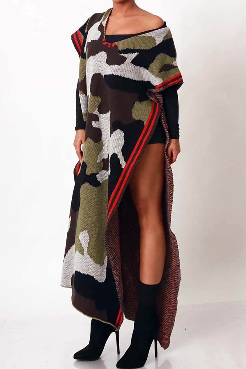New Arrivals - CAMO PRINT SIDE DEEP SLIT PONCHO (ONESIZE)