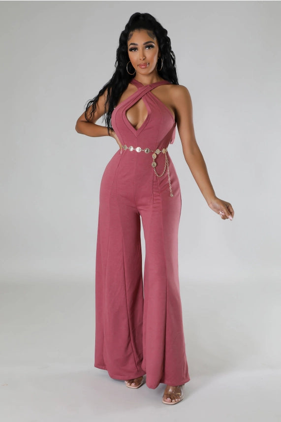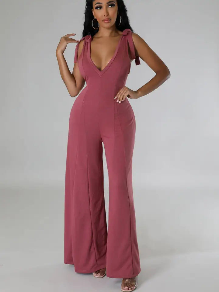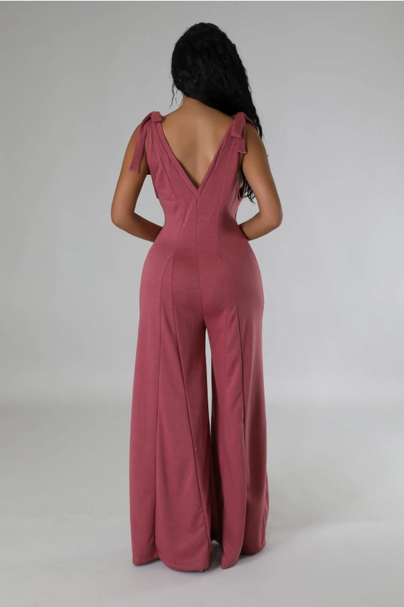 SLEEVELESS V NECK WIDE LEG JUMPSUIT